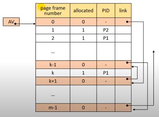 - link : 사용 가능한 프레임들을 Linked list로 연결
