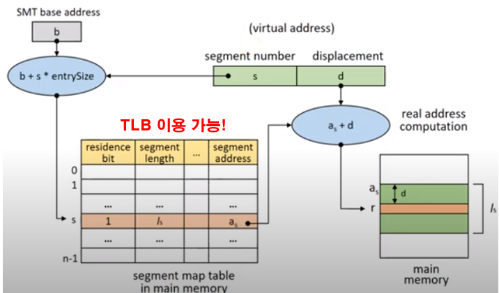 Page System과 유사하다. 물론 Segment mapping overhead를 줄이기 위해 TLB를 이용할 수도 있다.