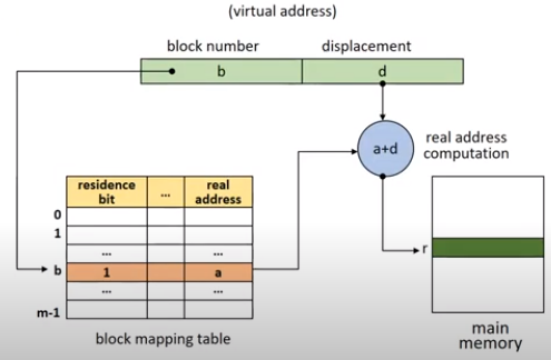 residence bit가 0인 경우에는 swap device(가상 메모리)에서 해당 블록을 메모리로 가져오고 BTM을 업데이트한 뒤에, 업데이트한 BTM에서 b에 대한 실제 주소 a를 가져오게 된다.