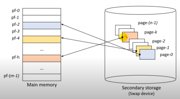 - 프로그램의 논리적 주소 영역에서 필요한 부분만 물리적 메모리에 적재하며, 필요하지 않은 공간은 디스크에 저장함