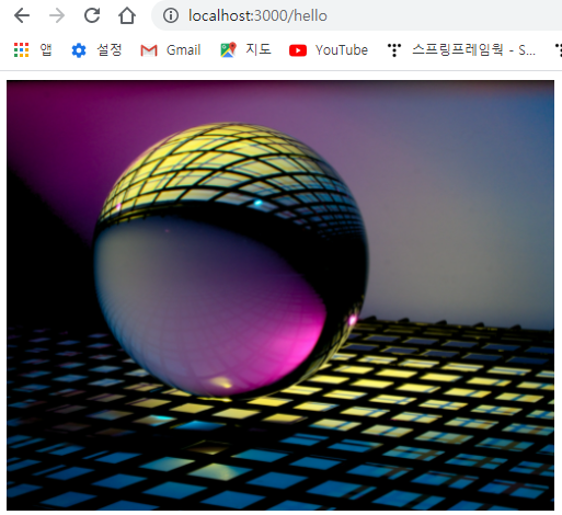 "http://localhost:3000/static/sphere.jpg" 요청이 서버로 들어왔지만, 컨트롤러 부분에서는 '/hello'에 해당하는 요청에 대한 처리만 작성해두었기 때문에 해당 파일에 접근할 수 없었던 것이다.