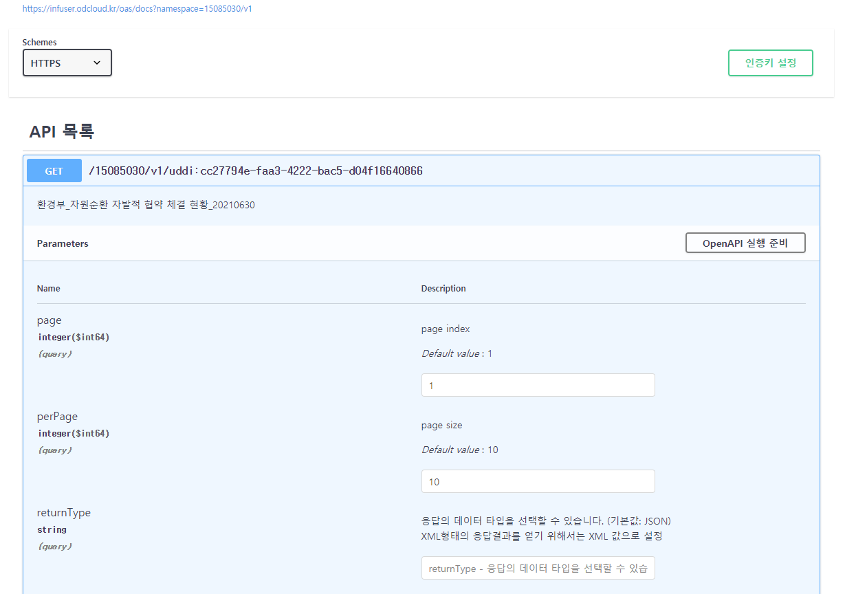 이런 경우에는 상세 페이지에서 "오픈API" 분류로 들어가면 된다.