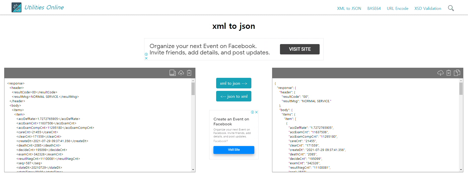 XML 데이터를 JSON 데이터로 변환했을 때의 내용을 확인할 수 있는 방법 2가지를 소개한다.