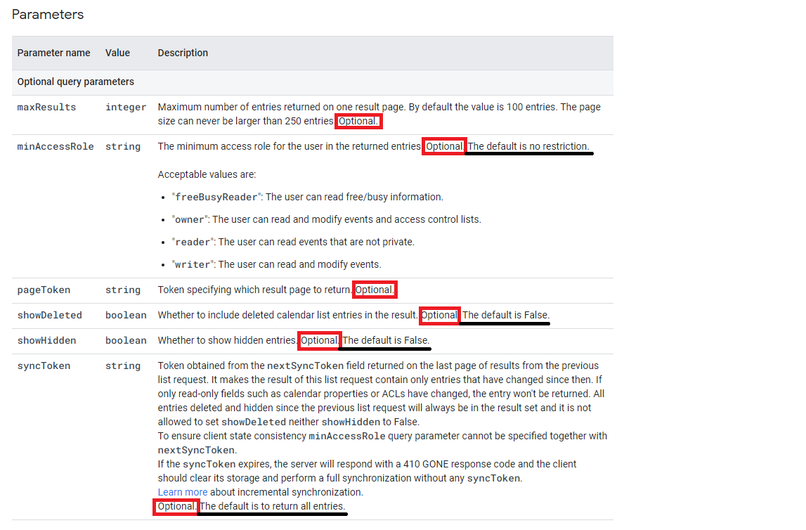 https://developers.google.com/calendar/api/v3/reference/calendarList/list?hl=ko