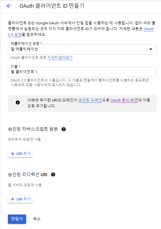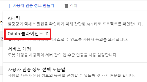 2) OAuth 클라이언트 ID