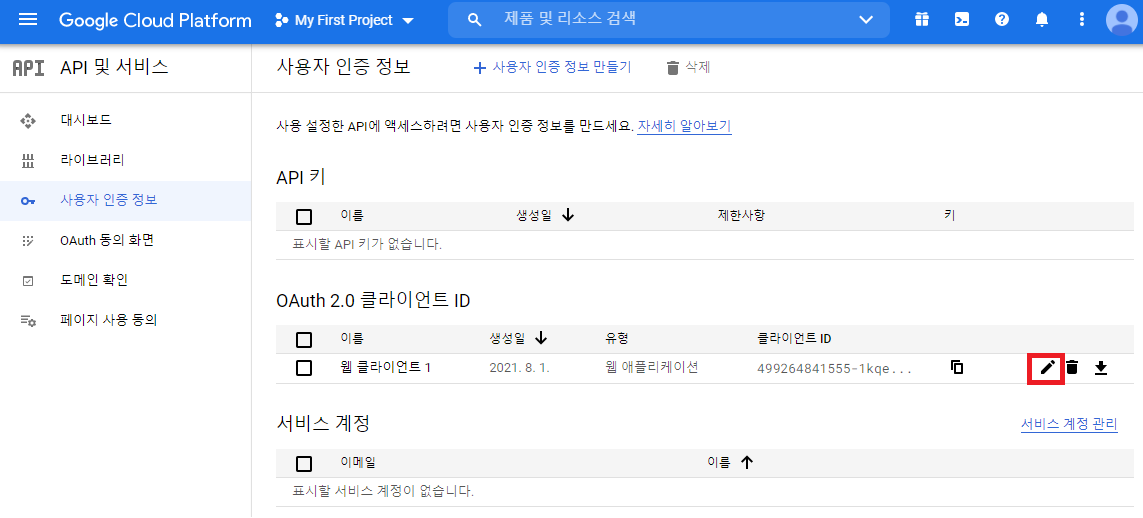 4) 돌아가서 다시 OAuth 클라이언트 ID 클릭