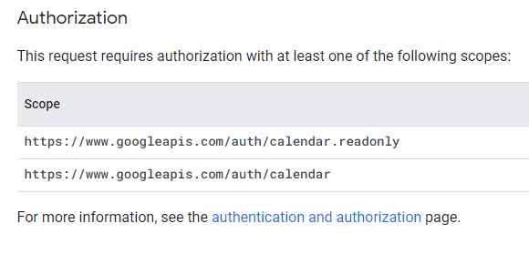 그리고, authentication and authorization 링크에서 해당 Scope의 의미를 확인할 수 있다.