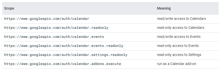 | [OAuth] Google Calendar(2) - Authorization code 받기 (0) | 2021.08.02 |