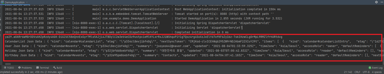 이제 이 access_token을 이용하여 구글 캘린더 정보를 프로젝트의 콘솔상에 출력해볼 것이다.