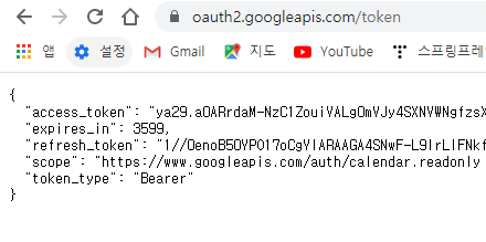Google Calendar(1)~(3)에 걸쳐 우리는 성공적으로 access_token을 얻어왔다.