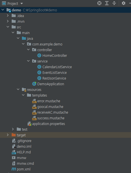 캘린더의 EventList JSON 데이터를 소스 코드로 받아오는 과정은 EventListService에서 처리했다.