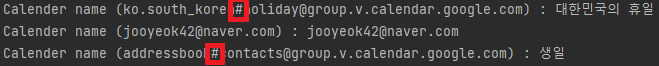 그래서 필자는 캘린더별 ID를 알기 위해 괄호 안에 ID를 출력시킨 것이다.