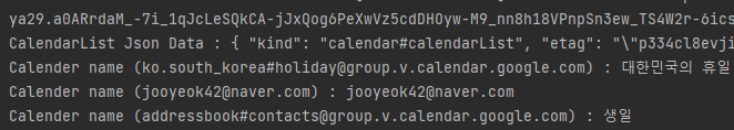 access_token과 CalendarList가 원하는대로 잘 출력되었다.