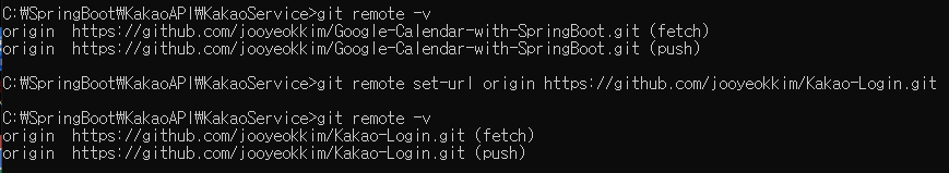 그리고 git remote url를 변경하는 명령어이다.