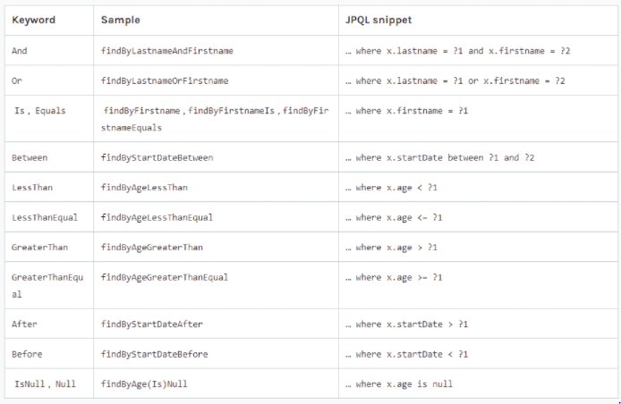 + 추가) Distinct : https://docs.spring.io/spring-data/jpa/docs/current/reference/html/#repositories.query-methods.query-creation