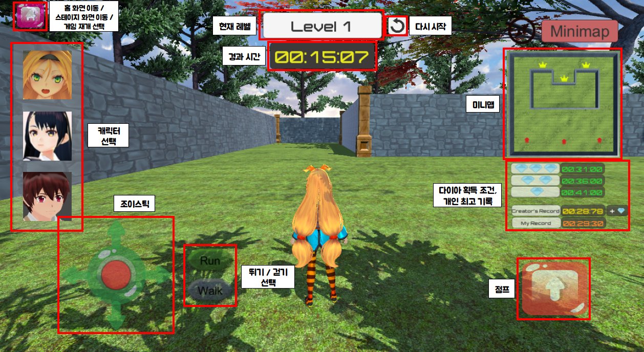 UI와 게임플레이에 대한 설명을 볼 수 있다.