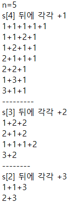 아래는 n=5를 1,2,3의 합으로 표현하는 방법을 직접 나열해 본 것이다.