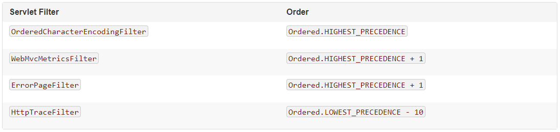 - Filter들의 우선순위는 다음과 같고, Order의 값이 낮을수록 우선순위가 높다.