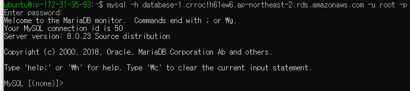 - 아래와 같은 문구가 출력되었다면, 성공적으로 접속이 된 것이다.