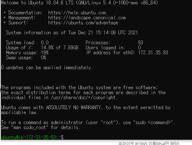 - 접속이 완료된 모습이다. 이제 우분투 컴퓨터에서 원격으로 명령어를 사용할 수 있게 되었다.