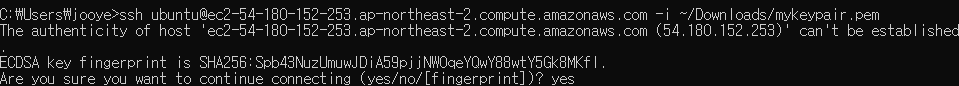 ssh ubuntu@[Public IP DNS or Address] -i [key pair 저장 위치]