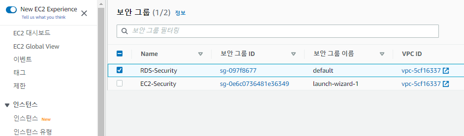 3) RDS Security Group에 EC2 인스턴스 등록