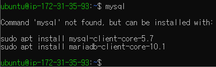 그리고 mysql 명령어를 입력하면 mysql을 설치하기 위한 명령어를 친절히 알려준다. 이 명령어들을 모두 입력해서 설치를 완료하자.