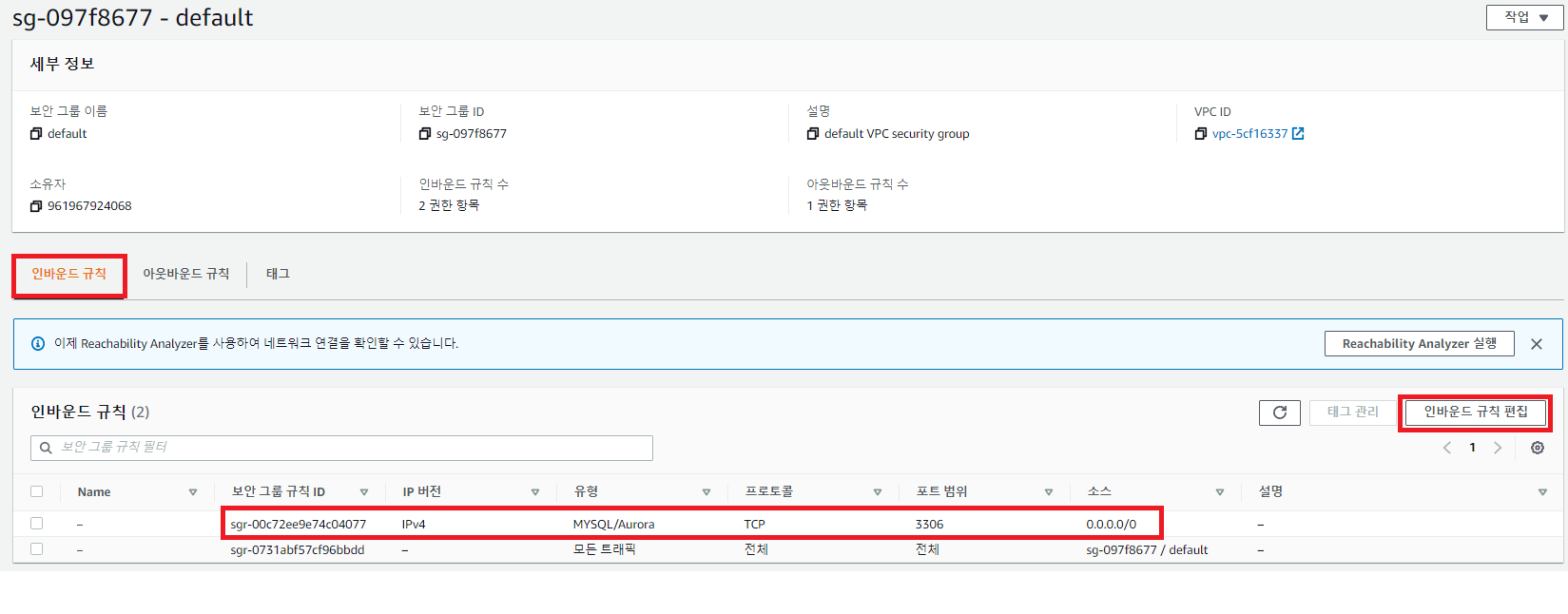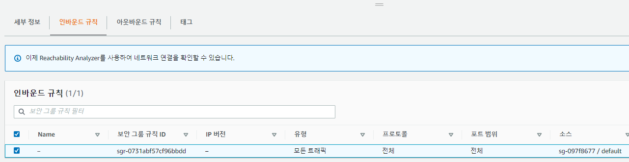 그리고 아까 설정했던 인바운드 규칙도 제거한다.