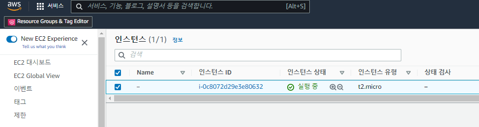 - 인스턴스가 잘 생성되었고, 드디어 해당 인스턴스의 Public IP DNS와 Public IP 주소를 배정받았다.
