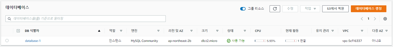 ※ 이전 포스팅에서는 DB 식별자가 mydb였는데, 모종의 이유로 DB 인스턴스를 다시 생성하게 되었다.