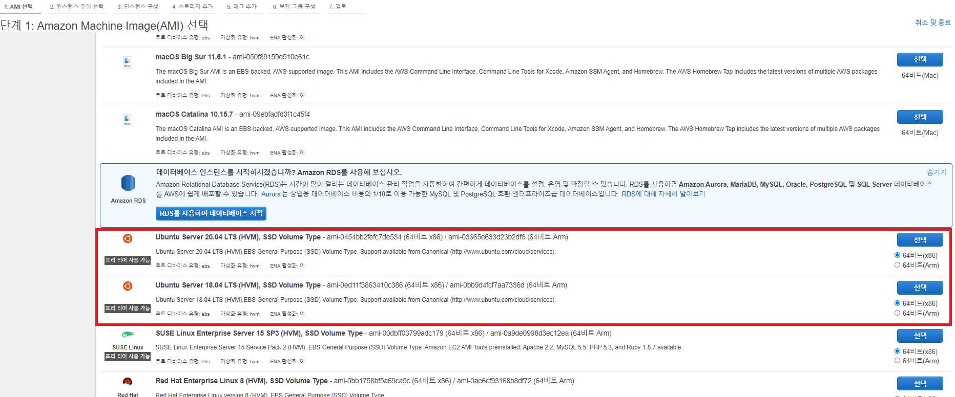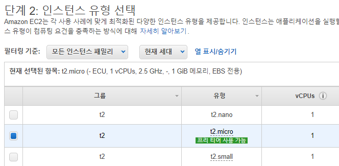 - AMI로는 우분투로 결정했고, 인스턴스 유형으로는 프리 티어를 선택했다.