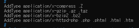 - AddType 부분의 아래에 다음과 같이 확장자들을 추가한다.