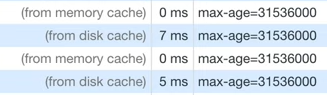 - 문서를 가져올 때 네트워크를 사용하지 않고, 메모리나 디스크에서 가져온 모습이다. Cache를 적용하면 응답 속도도 매우 빨라진다.