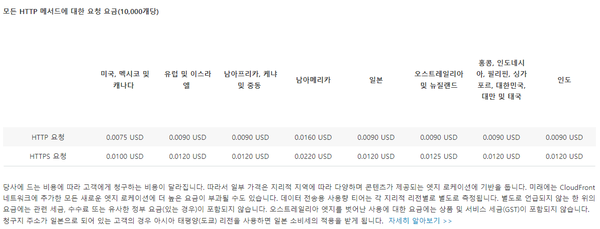 https://aws.amazon.com/ko/cloudfront/pricing/