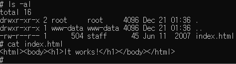 - apache는 기본적으로 htdocs라는 디렉토리를 가지며, htdocs 디렉토리는 apache가 웹 문서를 찾는 최상위 디렉토리이다. index.html 파일은 /usr/local/apache2/htdocs/index.html 경로로 존재하는 것을 확인할 수 있다.