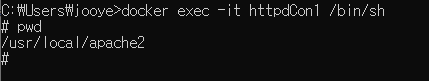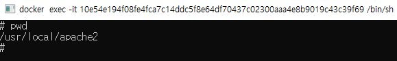 docker exec -it [컨테이너 이름] /bin/sh pwd