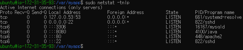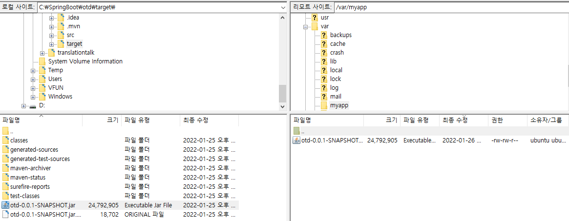 - 필자는 EC2 컴퓨터의 /var/myapp으로 executable jar file을 전송했다.