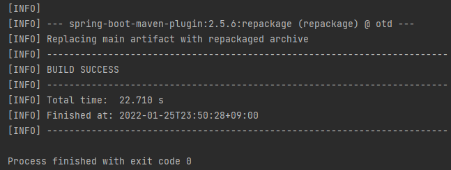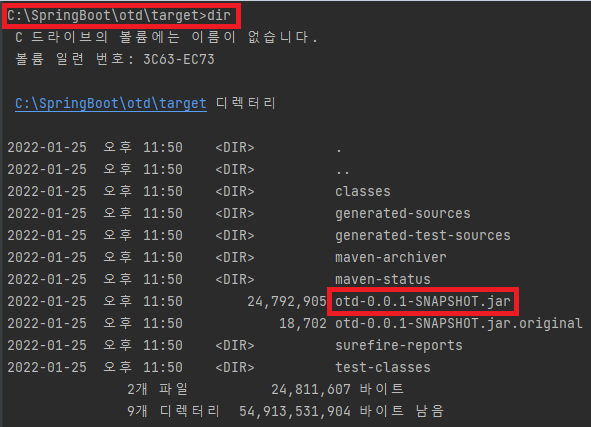 - 빌드 성공 시 패키지 파일은 target 디렉토리에 저장된다.