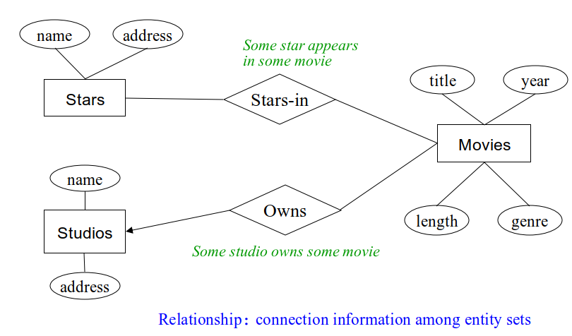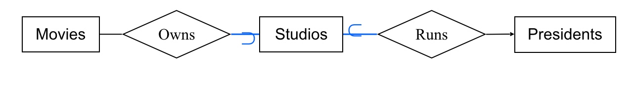 - E/R 다이어그램에서 두 entity set간(binary)의 관계에는 1:1(부-모), N:1, 1:N(부모-자식), N:N가 있는데 1쪽에는 선에 화살표를 표시한다 .