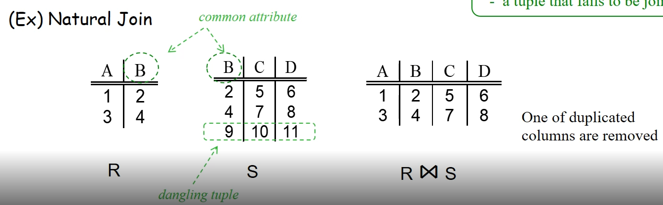 - dangling tuples : Join에 참여하지 못한 튜플들