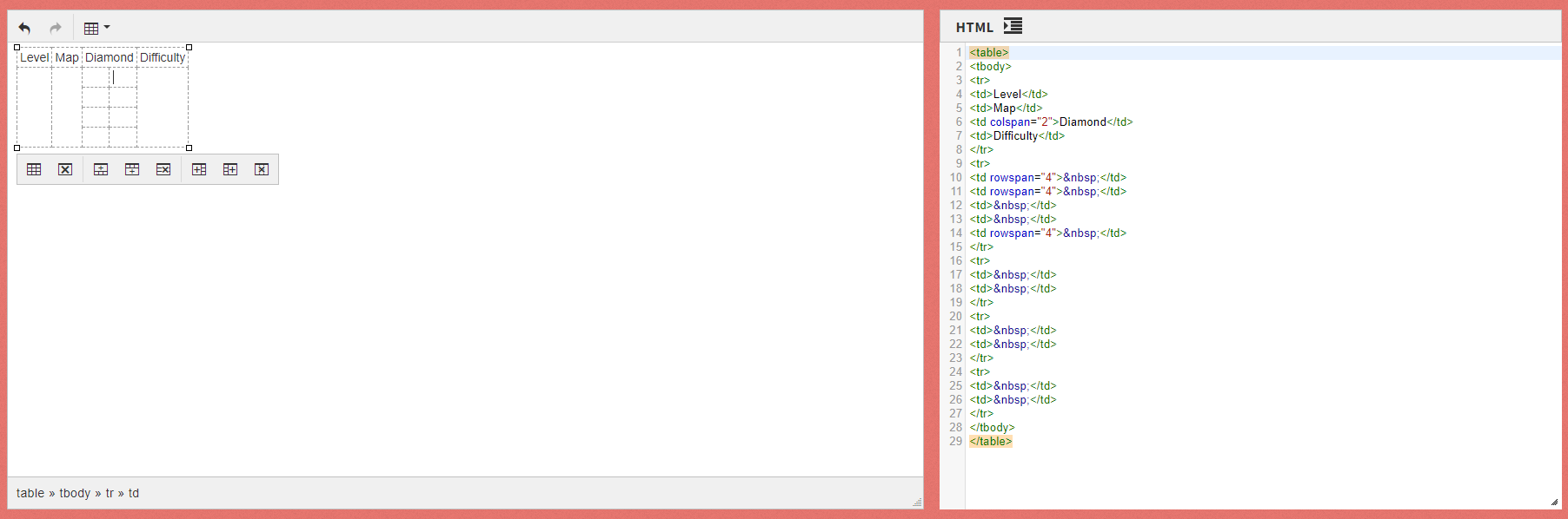 일일이 손코딩할 필요 없이 온라인 에디터에서 만든 테이블을 HTML 코드로 변환해주는 사이트를 추천한다.