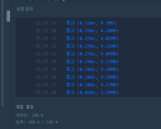 28개 테스트케이스 모두 정답