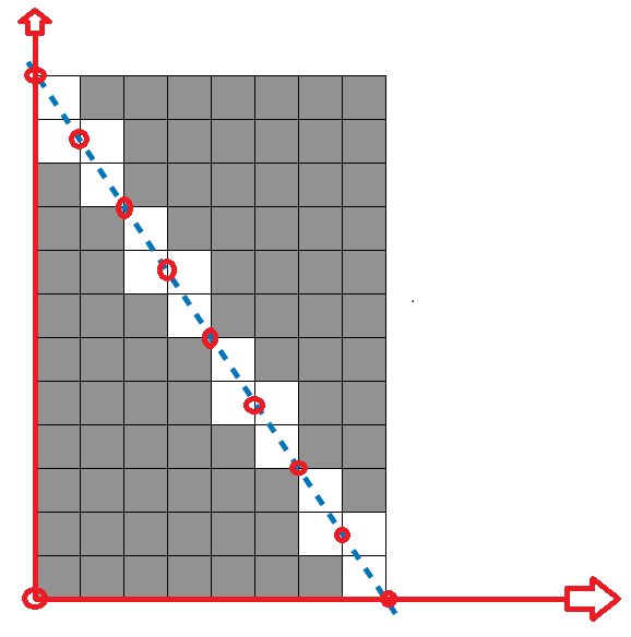 (1, 10.5)와 (2, 9)를 비교했을 때는 11-9=2개의 사각형이 제거된 것이다.
