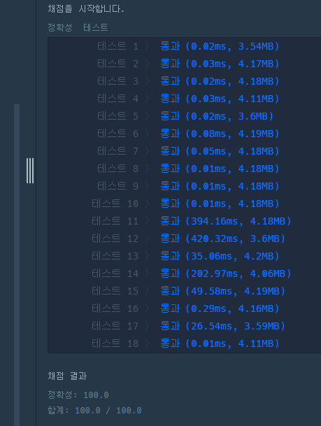테스트케이스 18개 모두 통과