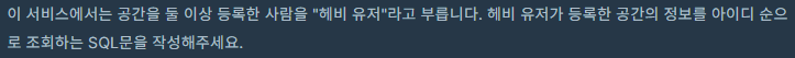 해설 : HOST_ID별 튜플의 수를 구하고, 튜플의 수가 2 이상인 HOST_ID들을 추출한 서브쿼리를 이용한다. 메인 쿼리의 HOST_ID가 서브 쿼리의 HOST_ID 리스트에 속한다면 이 튜플을 모두 출력하면 된다.