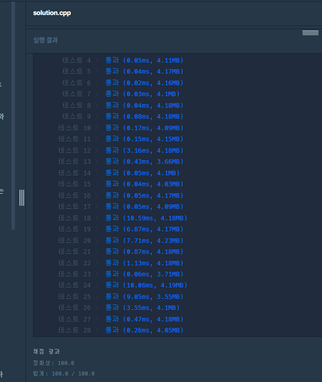 테스트케이스 28개 모두 정답