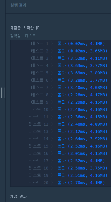 테스트케이스 20개 모두 정답