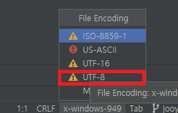 마지막으로 IntelliJ 하단부의 인코딩을 "UTF-8"로 Convert 해주면 최종적으로 변환이 끝난다.