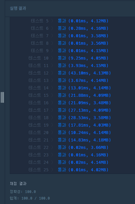 테스트 케이스 25개 모두 정답