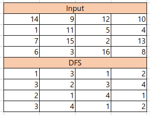 Input아래에 있는 DFS가 d[i][j]의 요소들이다.